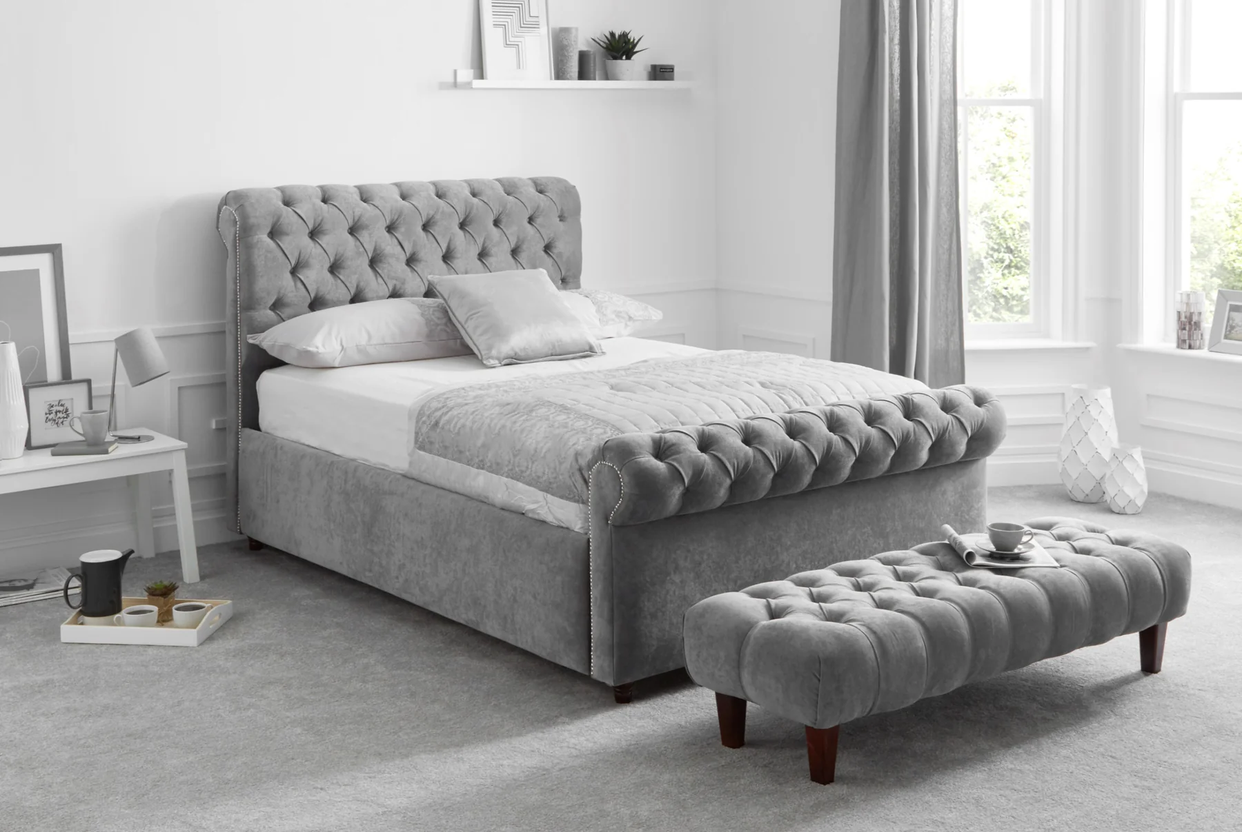 1 review for Carrington Chesterfield Sleigh Bed | Solid Base