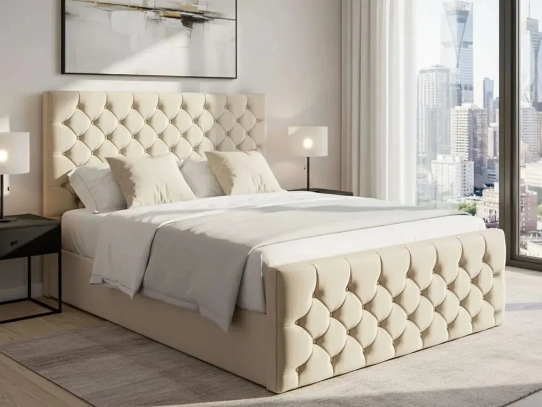The Florida Upholstered Bed is a stunning fusion of traditional British heritage and modern luxury. Featuring the iconic Chesterfield design, the headboard is defined by deep-buttoned tufting and exquisite diamond-pattern stitching. This bed doesn’t just fill a room—it commands it, offering a plush, regal aesthetic that never goes out of style.
