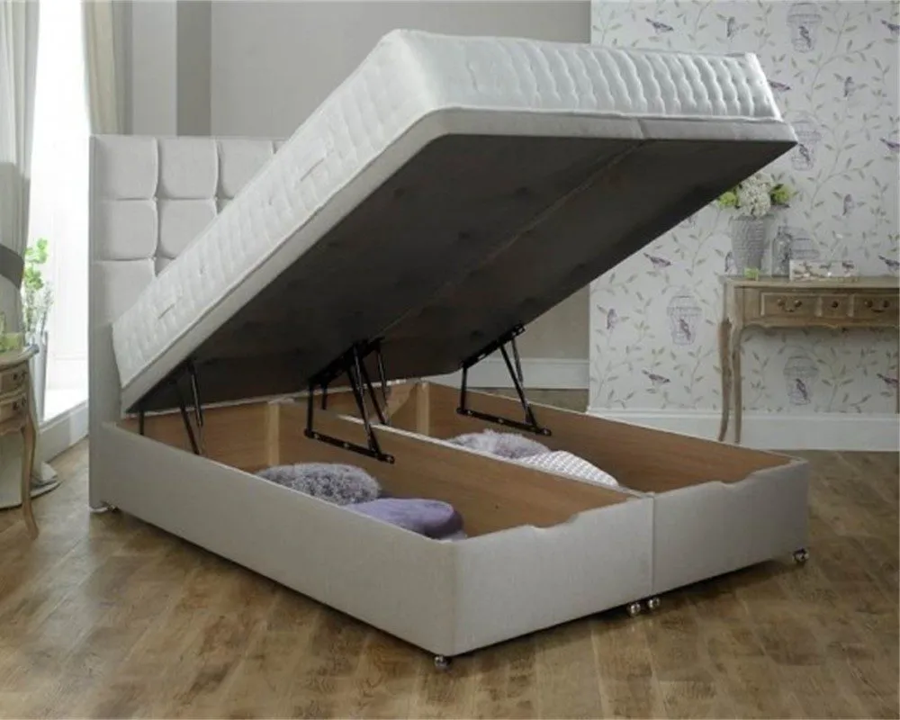 **Key Features:** – **Size Options:** Available in Single (90cm x 190cm), Double (135cm x 190cm), King (150cm x 200cm), and Super King (180cm x 200cm). – **Ottoman Storage:** The ottoman base offers ample under-bed storage, easily accessible with a smooth lift mechanism. Perfect for storing bedding, clothes, or other items, keeping your room clutter-free. – **Divan Base:** Upholstered in high-quality fabric, available in various colors and textures to complement any bedroom décor. The base is sturdy and durable, designed to support your mattress and provide a solid foundation. – **Optional Mattress:** Choose from a range of mattresses to suit your needs, including orthopaedic, memory foam, pocket sprung, or hybrid options. Each mattress is designed to provide optimal comfort and support, ensuring a restful night’s sleep. – **Headboard Compatibility:** The bed is compatible with a range of headboards, allowing you to customize the look of your bed to match your style. – **Lift Mechanism:** The gas-lift system is easy to operate, allowing the bed to lift effortlessly to reveal the full storage space underneath. – **Handmade in the UK:** Crafted with precision and care for quality and durability. – **Guarantee:** 5-year manufacturer’s guarantee on the bed frame. **Practical and Stylish Design:** The Janie Furniture Ottoman Divan Bed combines practicality with style. The ottoman storage offers a generous solution for keeping your bedroom organized, while the optional mattress selection allows you to tailor your sleep experience to your preferences. **Flexible Mattress Options:** Whether you prefer the firm support of an orthopaedic mattress, the contouring comfort of memory foam, or the balanced feel of a hybrid, you can choose the perfect mattress to complement your ottoman bed. Invest in the Janie Furniture Ottoman Divan Bed with Optional Mattress and enjoy the ultimate blend of style, storage, and comfort in your bedroom.
